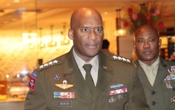 제이비어 브런슨 주한미군사령관이 지난달 26일 서울 종로구 포시즌스호텔에서 조현 외교부 장관, 엘브리지 콜비 미 국방부(전쟁부) 정책담당 차관과 조찬 회동을 마친 뒤 이동하고 있다. 연합뉴스 주한미군이 최근 서해에서 이뤄진 대규모 공중 훈련에 대해 제이비…