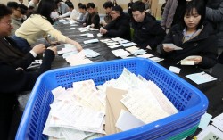 24일 오후 부산 해운대구 벡스코 제2전시장에서 부산시선관위와 구·군선관위 직원들이 제9회 전국동시지방선거를 앞두고 모의 개표 실습을 하고 있다. 이번 모의 개표 실습은 단일 선거와 달리 복잡한 지방선거 개표 절차를 점검하고 효율적인 개표 관리 방안을 마련하기 위해 …