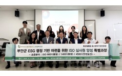 부안군 신활력플러스사업추진단이 개최한 ‘부안군 ESG 행정 기반 마련을 위한 ISO 심사원 양성 특별과정’ 현장에서 부안군 정화영 부군수(첫줄 가운데), 김병태 기획감사담당관(첫줄 가운데 왼쪽), 최연곤 로컬JOB센터장(첫줄 가운데 오른쪽, 전 부안군 경제산업국장)을 …