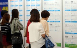 한 구직자 취업 박람회에서 여성 구직자들이 채용정보를 살펴보고 있다. 연합뉴스 임신·출산·육아 등으로 경제활동을 중단한 여성을 지칭해 온 ‘경력단절여성’이라는 용어가 ‘경력보유여성’으로 바뀔 전망이다. 국회 여성가족위원회 법안심사소위원회는 22일 여성의 경제…