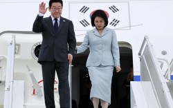 미국 뉴욕으로 출국하는 이재명 대통령과 부인 김혜경 여사가 22일 공군 1호기에 탑승해 인사하고 있다. 이 대통령은 23일 유엔총회에 참석해 기조연설에 나선다.