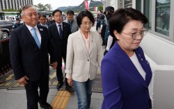 더불어민주당 초선 의원들이 22일 서울 종로구 주한미국대사관 앞에서 조지아주 한인 구금 사태 해결과 한미 관세 협상 관련 입장을 발표한 뒤 면담을 위해 대사관으로 향하고 있다. 이날 면담은 김상욱, 김준혁, 이재강, 임미애, 권향엽 의원이 참석했다. 연합뉴스 …