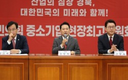 장동혁 국민의힘 대표(가운데)가 22일 오전 경북 경산산업단지관리공단 회의실에서 열린 중소기업 현장최고위원회의에서 모두발언을 하고 있다. 뉴스1 장동혁 국민의힘 대표는 22일 “(미국과의) 관세 협상은 완전히 실패했다”며 “정부가 도대체 무엇을 하는지 궁금하다”고…
