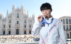 최민정이 이탈리아 밀라노 두오모를 배경으로 이번 동계올림픽에서 딴 금메달과 은메달을 들어 보이고 있다. 앞서 평창과 베이징에서 각각 2개와 3개의 메달을 목에 걸어 총 7개의 메달로 한국 최다 메달리스트가 됐다. 김종호 기자 21일(한국시간) 2026 밀…