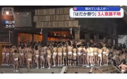 21일 일본 오카야마에서 사이다이지 에요(西大寺会陽) 행사, 일명 하다카 마쓰리(알몸 축제)가 진행되고 있는 모습. 사진 TV아사히 캡처 일본 전통 행사인 이른바 ‘알몸 축제’에서 다수의 부상자가 발생하면서 안전 관리에 대한 우려가 커지고 있다. 22일 교도…