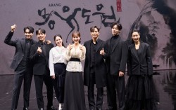 “브로드웨이에서도, 웨스트엔드에서도 통할 보편적이면서도 독창적인 작품입니다.”(윤호진 연출) 7일 화성예술의전당에서 열린 뮤지컬 '몽유도원' 제작발표회에서 출연 배우들이 포즈를 취하고 있다. 사진 에이콤 뮤지컬 ‘몽유도원’이 오는 27일 서울 장충동 국립극장 해…
