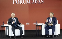 “위기를 극복하는 방법은 세 단어로 요약된다. 동맹, 동맹, 또 동맹이다.” '중앙일보-CSIS 포럼 2025'가 26일 서울 중구 신라호텔 다이너스티홀에서 열렸다. 이날 제임스 매티스 전 미 국방부 장관(왼쪽)과 시드니 사일러 전 미 국가정보위원회 북한정보분석관이 기…