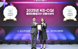 김민수 시몬스 대표(오른쪽), 문동민 한국표준협회 회장 수면 전문 브랜드 시몬스(대표 안정호)가 침대업계 최초로 콜센터품질지수 우수기업 인증을 획득했다. 23일 시몬스에 따르면 시몬스 고객센터가 '2025년 침대 부문 한국표준협회 콜센터품질지수 우수…