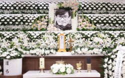 정부가 5일 별세한 고(故) 안성기 배우에게 대중문화예술 분야의 최고 영예인 금관문화훈장(1등급)을 추서한다고 이날 밝혔다. 5일 서울 서초구 서울성모병원 장례식장에 마련된 배우 고(故) 안성기씨의 빈소에 고인의 영정사진이 놓여 있다. 정부는 고인에게 금관문화훈장을추서…