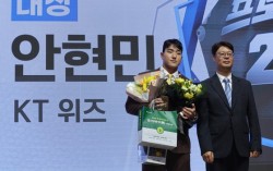 KT 안현민(왼쪽)이 2일 열린 2025 조아제약 프로야구 대상 시상식에서 대상을 받았다. 사진 일간스포츠 올 시즌 KBO리그를 결산하는 2025 조아제약 프로야구 대상은 한화 이글스의 고공행진을 이끈 코디 폰세와 혜성처럼 등장해 괴물 같은 활약을 펼친 …