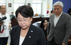 조국혁신당 김선민 당대표 권한대행과 서왕진 원내대표가 7일 서울 여의도 국회에서 당내 성 비위 사건에 대한 책임을 지고 사퇴의사를 밝힌 뒤 회의장을 나가고 있다. 연합뉴스 조국혁신당 지도부가 당내 성비위 사건과 관련해 7일 전원 사퇴했다. 김선민 조국혁신당 …