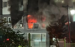 경남 양산과 거제에서 부부 싸움 중 흉기를 휘두르거나 자택에 불을 질러 4명의 사상자가 발생하는 사건이 발생, 경찰이 수사에 나섰다. 25일 오후 10시58분쯤 경남 거제시 옥포동의 한 아파트에서 발생한 화재로 연기가 나고 있다. 사진 경남소방본부 부부 갈등 중 흉…