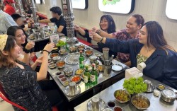 지난 19일(현지시간) 필리핀 마닐라의 한국식 고깃집 ‘삼겹살라맛’에서 현지 손님들이 한국 기업 소주를 마시고 있다. [사진 하이트진로] 지난 19일 오후(현지시간) 필리핀 마닐라의 한 한국식 고깃집은 손님으로 가득했다. “타가이(‘건배’라는 뜻)”란 목…