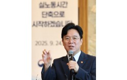 김영훈 고용노동부 장관이 24일 오전 서울 중구 LW컨벤션센터에서 열린 ‘실 노동시간 단축 로드맵 추진단’ 첫 회의에서 모두발언을 하고 있다. 뉴스1 고용노동부가 주 4.5일제 등 근로시간 단축 논의를 본격적으로 시작했다. 노동조합과 사용자 단체, 정부(…