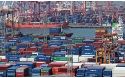 부산 남구 신선대(사진 아래) 및 감만(위) 부두 야적장에 수출입 컨테이너가 가득 쌓여 있다. 뉴시스 국책 연구기관인 산업연구원이 올해 한국의 실질 국내총생산(GDP) 성장률 전망치를 기존 2.1%에서 1.0%로 크게 내려 잡았다. 미국 트럼프 행정…