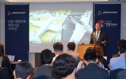 윌 셰이퍼 보잉코리아 사장이 24일 서울 중구 롯데호텔에서 열린 기자간담회에서 발표를 진행하고 있다. 사진 보잉코리아 보잉코리아가 한국을 항공우주 산업의 핵심 파트너라고 강조하며, 국내 산업계와의 협력과 투자를 확대하겠다고 밝혔다. 윌 셰이퍼 보잉코리아 대표…