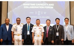 HD현대중공업이 23일 말레이시아 쿠알라룸푸르에서 ‘해양역량·협력 포럼'을 개최했다. 오른쪽 세번째부터 천정수 HD현대중공업 전무, 모하메드 샤이풀 압둘라 해군 기술참모장, 김정일 HD현대중공업 상무. 사진 HD현대 HD현대중공업이 말레이시아 해군 현대화…