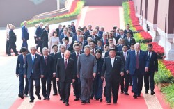 3일 오전 8시 35분(현지시간) 베이징 고궁박물관 내 돤먼(端門) 앞에서 기념촬영을 마친 내외빈을 시진핑(習近平) 중국 국가주석과 양 옆에 선 김정은 북한 국무위원장, 블라디미르 푸틴 러시아 대통령이 맨 앞에서 이끌며 전승절 행사가 열리는 천안문으로 향했다. 냉전 시…