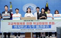 지난 5일 서울 여의도 국회 소통관에서 열린 고교학점제 재검토 촉구 교원 3단체 연합 기자회견에서 강경숙 조국혁신당 강경숙 의원이 발언하고 있다. 연합뉴스 올해부터 전면 시행 중인 고교학점제로 학교와 학생의 부담이 커졌다는 지적이 잇따라 제기되는 가운데 교육부가 …