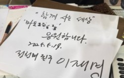「 2화. 정청래 친구 이재명 」지난 5월 22일 이재명 후보가 서울 홍대 부근 식당에 남긴 글. 사진 정청래 페이스북 #1. 툭 던진 말이었다. 그러나 그 말은 오래 남았다. 무심함 속에 감동이 뭍었다. 대선을 열흘 여 앞둔 지난 5월 22일. 이재명 후보가…
