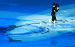 갈라쇼에서 갓을 쓰고 검정 두루마기를 걸치고 연기를 펼친 이해인. ‘케이팝 데몬 헌터스’를 감명 깊게 봐 안무를 짜고 사자보이즈로 변신했다. 케데헌 SNS도 이해인 영상에 “WOW”라는 댓글을 남겼다. [신화통신=연합뉴스] 피겨 스케이팅 국가대표 이해인(…