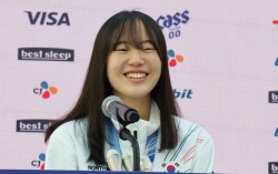 스노보드 여자 빅에어 동메달리스트 유승은이 20일(현지시간) 이탈리아 밀라노의 빌라 네키 캄필리오에 마련된 코리아하우스에서 기자회견을 하고 있다. 김종호 기자 20260220 ‘여고생 스노보더’ 유승은(18·성복고)은 자신을 둘러싼 뜨거운 관심이 어색했는…