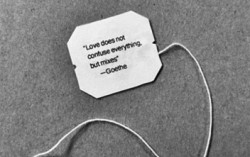 소설 『괴테는 모든 것을 말했다』에서 이야기의 출발점이 되는 티백 끝 메모. 작가는 이 책을 위해 '괴테의 미발표 편지에 대하여'라는 홈페이지를 만들고 이 사진을 올려뒀다. 사진 작가 홈페이지 캡처 일본의 독문학자 도이치 히로바 교수는 어느 날 찻잔 속 …