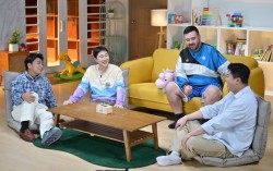 '이웃집 남편들'의 패널들. 왼쪽부터 개그맨 곽범, 방송인 슬리피와 샘 해밍턴, 개그맨 송하빈이 출연해 연애부터 결혼·임신·출산·육아까지의 과정을 편하게 터놓는다. 사진 KBS “아이를 낳으면 (몸이) 바로 복구되는 거예요” “아니, (TV 속) 연예인들…