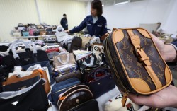 지난 2월 20일 서울 중구 시청 남산 별관에서 서울시 민생사법경찰국(민사국) 관계자들이 명동 일대에서 외국인을 상대로 위조 상품을 판매한 일당 2명으로부터 압수한 가방 등을 정리하고 있다. 연합뉴스 온라인 쇼핑을 통해 가품(짝퉁)을 구입한 소비자 절반 이상이 환…