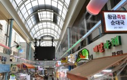 경기 수원시에 있는 구매탄시장은 2019년부터 쿨링포그를 운영하고 있다. 사진 수원시 경기 수원시 구매탄시장과 못골종합시장, 화서시장 안은 매년 여름이면 안개비가 내린다. 수원시가 설치한 증발식 냉방시설 '쿨링포그(cooling fog)’ 때문이다. 수도…