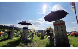18일 국립대전현충원 장병 묘역에 있는 공군 오충현 대령, 어민혁 소령, 최보람 대위 묘비에 양산이 씌어져 있다. 이들은 비행 훈련 중 순직했다.