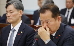 더불어민주당 정청래 대표(왼쪽)와 국민의힘 송언석 비대위원장이 18일 서울 동작구 국립서울현충원 현충관에서 열린 김대중 전 대통령 서거 16주기 추모식에서 서로 다른 곳을 보며 자리에 앉아 있다. 김종호 기자. 송언석 국민의힘 비상대책위원장 겸 원내대표…