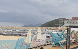 해운대 페스타 행사 일환으로 마련된 워터파티장이 지난달 22일부터 중단됐다. 이은지 기자 부산 해운대구가 해수욕장 200m 구간을 민간사업자에 넘겨 행사 진행을 허용했지만, 20여일 만에 무대 공연이 중단되고 흉물로 방치되자 민간사업자와의 협약을 해지했…