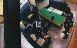당시 지구대에서 피고인 체포하는 경찰관들 모습. 연합뉴스 택시에 무임승차해 지구대에서 조사를 받던 중 경찰의 종아리를 깨물어 공무집행방해 등의 혐의로 재판에 넘겨진 60대가 실형을 선고받았다. 18일 춘천지법 형사2단독 김택성 부장판사는 용모(65)씨에게 징…