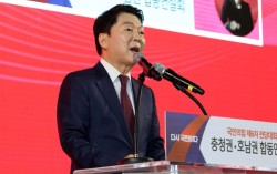 13일 오후 대전 서구 배재대학교에서 열린 국민의힘 충청·호남권 합동연설회에서 당 대표 후보로 나선 안철수 후보가 연설하고 있다. 연합뉴스 국민의힘 윤리위원회가 전당대회 합동연설회장에서 소란을 일으킨 전한길씨에게 가장 낮은 징계 수위인 ‘경고’ 처분을 내…
