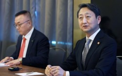 안덕근 산업통상자원부 장관이 6일(현지시간) 체코 프라하 도착 직후 열린 기자 간담회에서 발언하고 있다. 왼쪽은 황주호 한수원 사장. 연합뉴스 안덕근 산업통상자원부 장관은 7일 체코 신규 원전 사업 최종 계약 서명이 연기된 것과 관련해 "예상 못 한 상황…