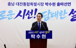 지난 6일 오전 더불어민주당 박수현 국회의원이 충남도청에서 기자회견을 열고 충남대전통합시장 출마를 선언하고 있다. [사진 박수현 국회의원실] 대전·충남 행정통합이 무산될 가능성이 높아진 가운데 여야의 대진표가 속속 채워지면서 선거가 본격화하고 있다. …