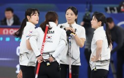 여자 컬링 '다음 엔드 전략은' (코르티나담페초=연합뉴스) 서대연 기자 = 19일(현지시간) 이탈리아 코르티나담페초 컬링 올림픽 스타디움에서 열린 2026 밀라노ㆍ코르티나담페초 동계올림픽 컬링 여자 라운드로빈 한국과 캐나다의 경기에서 1점을 빼앗기며 2엔드를 마친 …