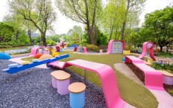 배스킨라빈스의 아이스크림 스푼이 핑크빛 놀이 정원으로 변신했다. 5일 SPC그룹은 서울 광진구 능동에 있는 서울 어린이대공원에 ‘배스킨라빈스 핑크 스푼’을 업사이클링(Upcycling, 생활 폐기물을 재가공해 새로운 가치를 가진 상품으로 만드는 활동)한 놀이 정원…