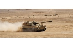 국내 방위산업 4사가 무기 해외 수출에 힘입어 지난 1분기 역대 최대 합산 매출을 기록했다. 사진은 한화에어로스페이스의 K9 자주포가 중동 사막을 달리는 모습. 사진 한화에어로스페이스 잇따른 무기 수출 성과로 국내 방위산업 4사의 1분기이 총 8조원을 돌…