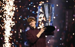얀니크 신네르가 17일 ATP투어 최종전에서 우승한 뒤 트로피를 들고 있다. [AFP=연합뉴스] “얀니크 신네르(세계 2위·이탈리아)가 카를로스 알카라스(1위·스페인)의 진정한 라이벌이라는 사실을 입증했다.” 뉴욕타임스가 17일(한국시간) 남자프로테…