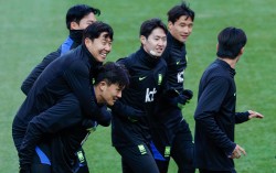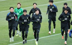 오현규(왼쪽)을 비롯한 축구 대표팀이 아프리카의 강호 가나와 평가전을 하루 앞둔 17일 서울월드컵경기장에서 달리기를 하며 몸을 풀고 있다. 이날 경기장에는 찬바람이 불며 체감 기온이 1도까지 떨어졌다. [연합뉴스] 내년 국제축구연맹(FIFA) 북중미월드컵을 앞둔 …