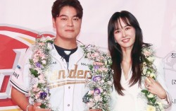 추신수 SSG 랜더스 구단주 보좌역 겸 육성총괄이 지난 6월 14일 인천 SSG랜더스필드에서 열린 자신의 은퇴식에서 아내 하원미와 기념촬영을 하고 있다. 사진 SSG랜더스=뉴스1 추신수(43) SSG 랜더스 구단주 보좌역이 한국 선수로는 최초로 미국프로야구 메이저…