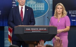 스콧 베센트 미 재무장관(왼쪽)은 지난달 29일(현지시간) 트럼프 대통령 취임 100일 경제성과 브리핑에서 “(한국과 일본 정부가) 선거 전 무역 협정 틀을 완성하길 원한다”고 말했다. [신화통신=뉴시스] 스콧 베센트 미 재무부 장관이 한국과 일본이 “선…