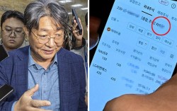 차명 주식 거래 의혹을 받고 있는 이춘석 더불어민주당 의원이 5일 오후 국회 본회의에 참석한 뒤 취재진에 둘러싸여 있다. 국회 법제사법위원회 위원장인 그는 전날 본회의장에서 휴대전화 주식 거래 앱을 사용하는 사진이 찍혔는데, 계좌 명의가 보좌관의 이름 ‘차○○’(붉은 …