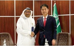 27일 사우디아라비아 주베일에서 진행된 얀부2 발전소 연료전환 공사 계약 체결식에서 마라픽 자말 압둘라만 오마르 수석 부사장(왼쪽), 두산에너빌리티 손승우 파워서비스 BG장이 기념사진을 촬영하고 있다. 두산에너빌리티가 사우디아라비아에서 1300억원 규모의 대형 연…