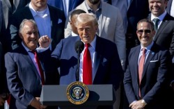 도널드 트럼프 미국 대통령이 2025년 4월 28일 미국 워싱턴 DC 백악관 남쪽 잔디밭에서 2025년 슈퍼볼 우승팀인 필라델피아 이글스를 방문해 연설을 하고 있습니다. [EPA=연합뉴스] 도널드 트럼프 대통령이 다음 달 3일(현지시간) 예정인 자동차 부…