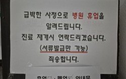 지난 5일 오전 강원 강릉시내 한 의원으로 올라가는 계단에 '급박한 사정으로 병원 휴업을 알려드립니다. 8월 1일부터 3개월 이상'이라고 적힌 안내문이 붙어있다. 박진호 기자 "집단 전파 가능성 높다" 강원 강릉시의 한 정형외과의원에서 발생한 집단 의료 감…
