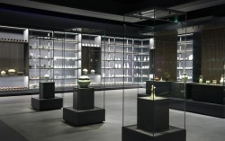 국립광주박물관 안에 새로 개관한 도자문화관 1층 ‘신안해저 도자 전시실’ 전경. 전남 신안 앞바다에서 발굴된 14세기 신안선 출수 도자기 6500점이 각양각색의 맵시를 뽐낸다. 사진 국립광주박물관 전시실 입구에서 국화 넝쿨무늬가 선명한 청자 한 점이 관람객을 맞는…