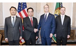 주요 20개국(G20) 재무장관회의 및 국제통화금융위원회(IMFC)'에 참석차 미국 워싱턴D.C를 방문중인 최상목 부총리 겸 기획재정부 장관이 안덕근 산업통상자원부 장관과 함께 24일(현지시간) 미국 워싱턴 DC 재무부에서 열린 '한-미 2 2 통상협의(Trade Co…
